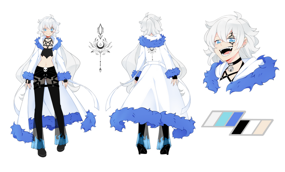 May 30th, 130000+ BCE.『 Description 』Alice is a 5'1 Caucasian white female with snow white hair, sapphire blue eyes, a light color pigment within the skin and a snub nose. Under her right eye there in a small wisdom mark signifying the mark of wisdom or coming into ruler ship through obtaining power in the age of the gods. Hers has yet to mature. She adorns black leather gloves with metal stubs on each knuckle and a strap with a metal button. She wears a royal blue shirt with a black tank overtop. Around her neck is a bottle that contains a mysterious substance that allows her to counter the effects of the dark bring; final story which is placed inside the jaw of the skull on her center belt. 3 belts lay around her waist in a nebula formation. She wears jeans with chains on either side that connect to the belts. Her boots have several buckles, and are garnished with a metal heel for combat purposes. Lastly she wears a white trenchcoat with royal blue fur on the cuffs, sides, and bottom.『 Height 』
