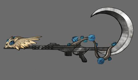 Gunscythes that harness raw moonlight to fire lazers and elemental bullets(Ice, Electricty, Fire) The blades upon the scythes have the effect of negating healing. However, if the user is cut with the blade, it applies to them also.