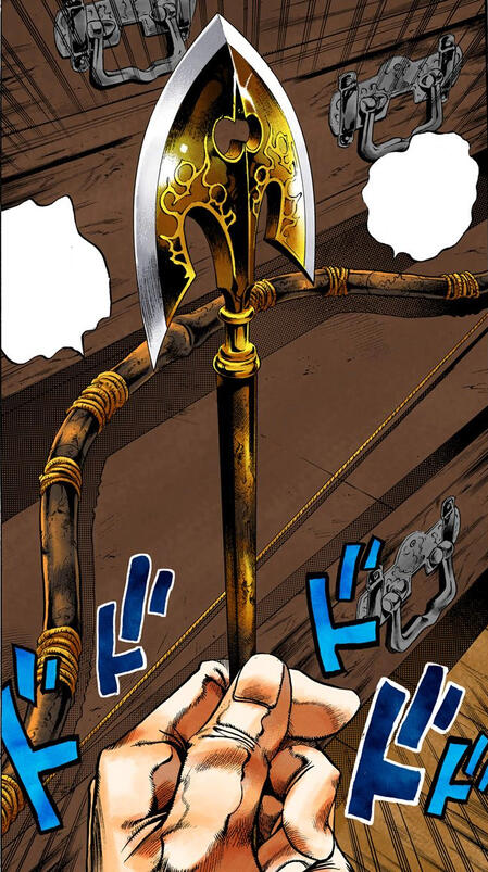 After an exchange with DIO, Alice managed to obtain the arrow after gifting him a Dark Bring. With the arrow, Alice is capable of giving other people stands depending on their fighting spirit. The stronger the fighting spirit, the stronger the stand.Every once and awhile DIO will want his arrow back, but usually it will be returned. Seems this arrow is of great value to him.